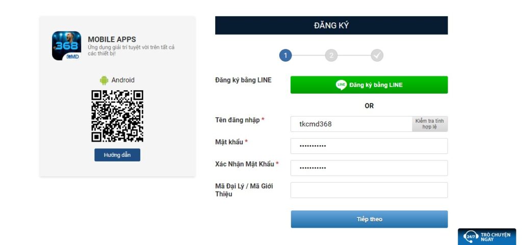 Bước 2: Nhấp vào nút “Đăng Ký” tài khoản CMD368