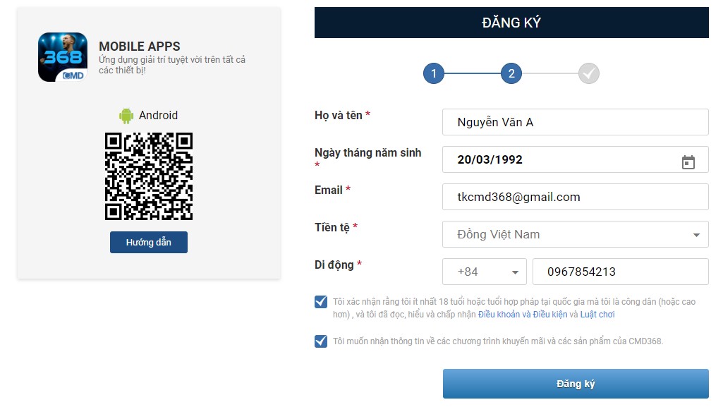 Bước 4: Xác nhận thông tin và hoàn tất đăng ký tài khoản CMD368